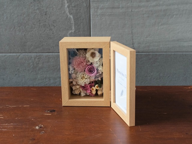 ナチュラルな木目調のフォトフレームとディスプレイボックスがひとつになった商品です。