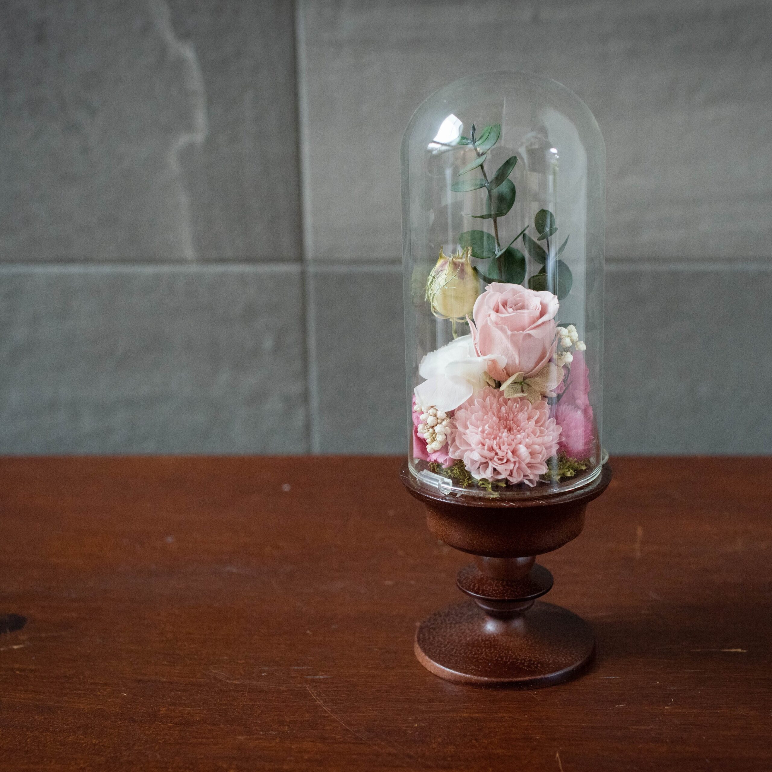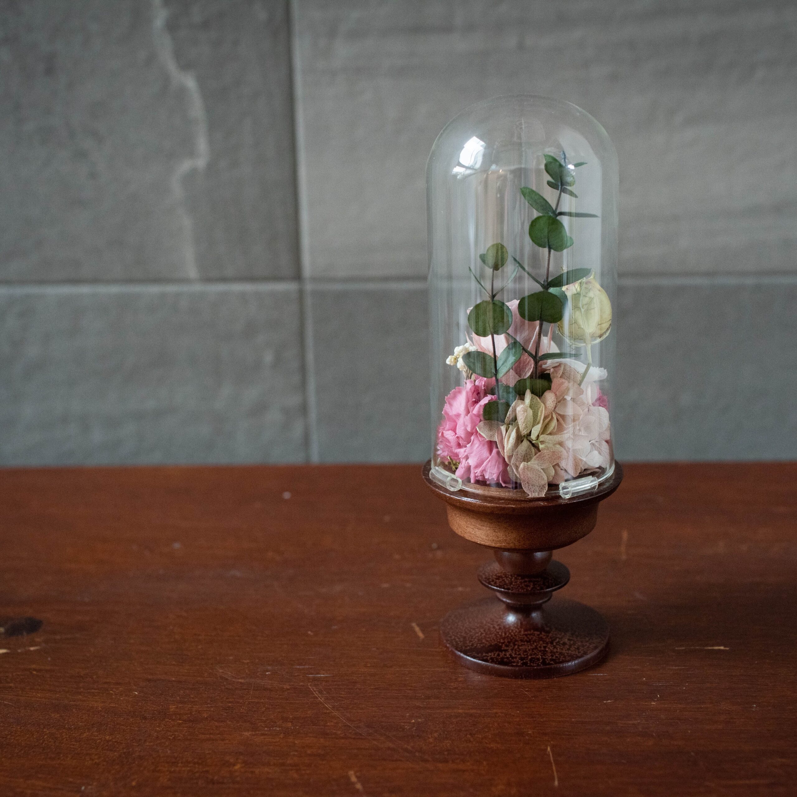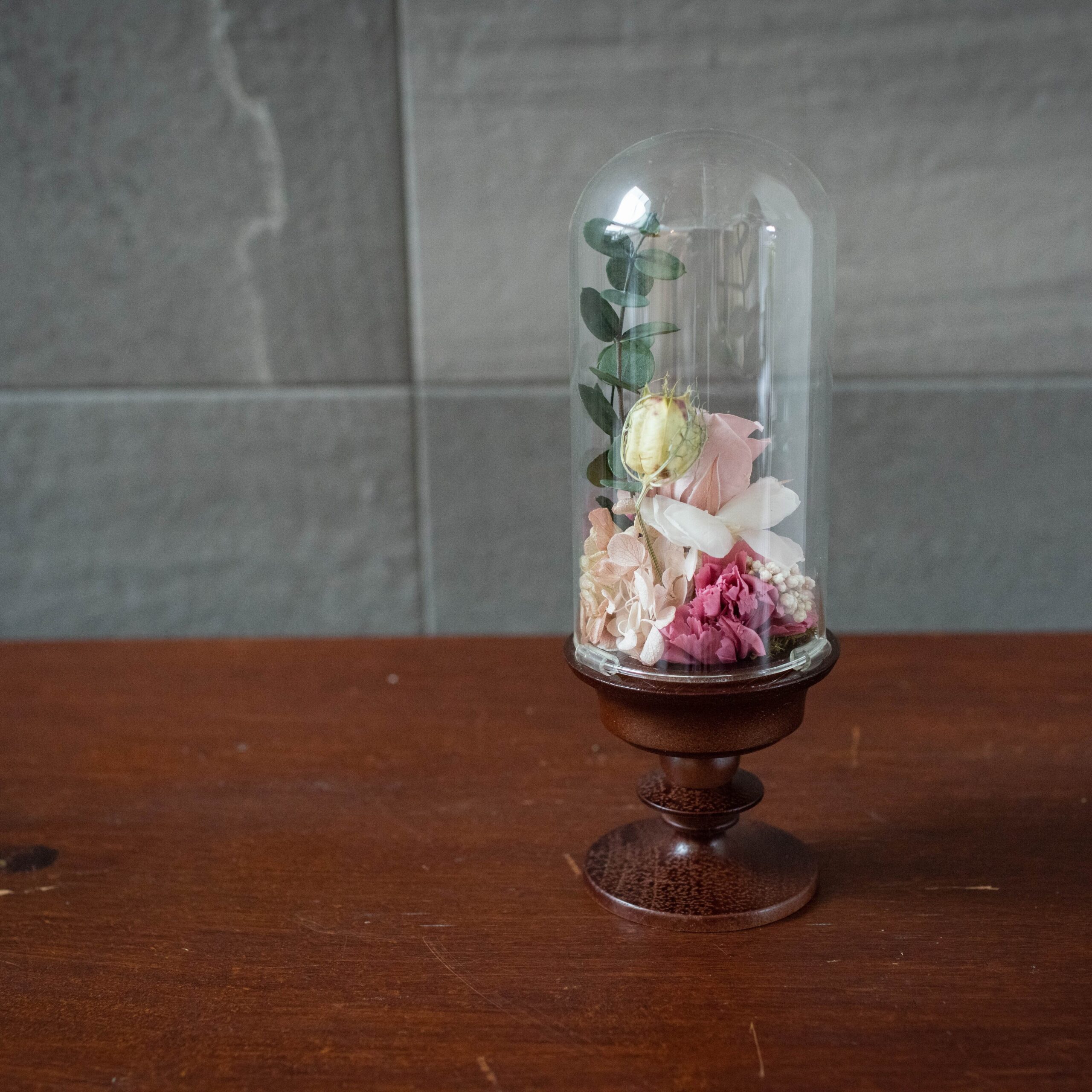 ガラスドームアレンジなので、お花にホコリがかぶる心配もありません。