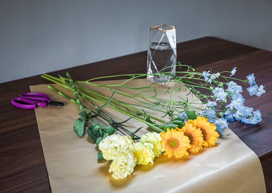 お花の茎の長さをそのままでお渡しするので、