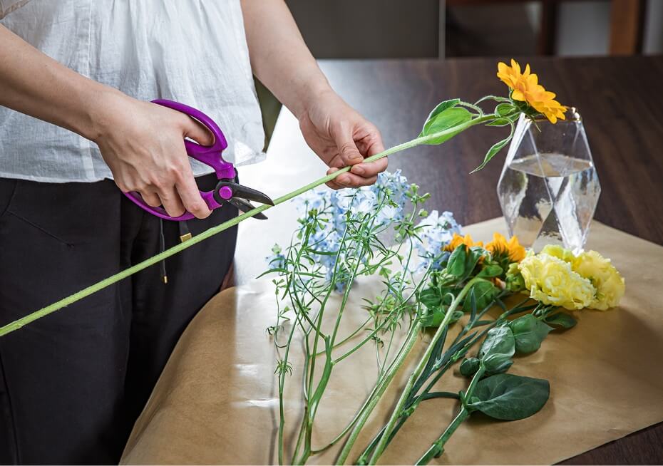 手持ちの花器に合わせてお花との組み合わせや丈を調節して
