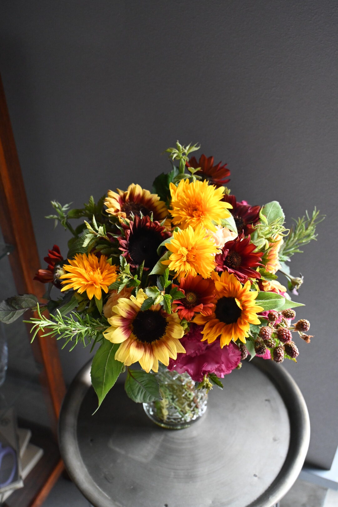 ¥5500季節のお花を取り入れ、葉物との相性、色や質感などを考えながらフローリストが束ねます。